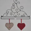 Superposition d’un cœur en bois sur un cœur tissu.