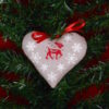 Rembourrage  avec de le ouatine et un ruban de satin rouge pour le suspendre.
