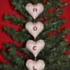 un pochoir feuilles rouge, peint à la main sur chacun.